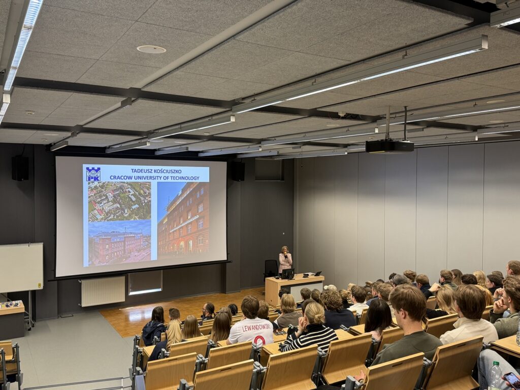 W dniu 25 marca 2026 r. Wydział Inżynierii Lądowej Politechniki Krakowskiej odwiedziła grupa 71 studentów wraz z trzema opiekunami z Norwegian University of Science and Technology (NTNU), największej pod względem liczby studentów norweskiej uczelni, reprezentujących Department of Civil and Environmental Engineering. Studenci, będący na ostatnim roku studiów pierwszego stopnia, rozpoczęli pobyt w Krakowie od wizyty na budowie kompleksu sportowego KS Clepardia, którą współorganizował nasz Wydział. Następnie odwiedzili Politechnikę Krakowską, aby poznać zaplecze dydaktyczne i badawcze „od środka”.