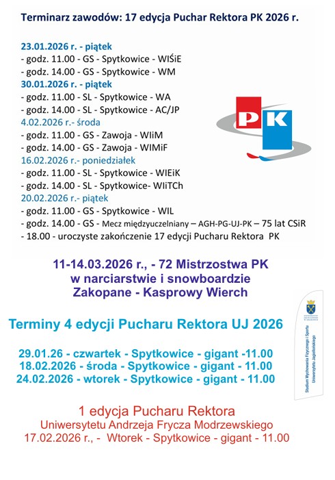 72. Mistrzostwa Politechniki Krakowskiej w narciarstwie i snowboardzie Rada Koordynatorów Pucharu Rektora zaprasza narciarzy i snowboardzistów Wydziału Inżynierii Lądowej na 17 edycję zawodów.
