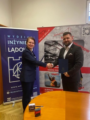 W dniu 13 lutego 2025 r., w gabinecie Dziekan Wydziału Inżynierii Lądowej PK dr hab. inż. Lucyny Domagały, prof. PK nawiązano współpracę z firmą Primost Południe Sp. z o.o., renomowanym generalnym wykonawcą obiektów inżynierskich (mostów, wiaduktów, estakad, przepustów, konstrukcji oporowych).  Podpisanie umowy jest zwieńczeniem kilkumiesięcznych ustaleń pomiędzy Prezesem firmy Primost-Południe Sebastianem Nowakiem i dr inż. Markiem Pańtakiem przedstawicielem Katedry Konstrukcji Mostowych Metalowych i Drewnianych WIL PK. Efektem tych rozmów jest porozumienie, które otwiera nowe możliwości dla studentów oraz kadry dydaktyczno-naukowej WIL PK, przyczyniając się do rozwoju dydaktyki i praktycznych aspektów kształcenia inżynierskiego.