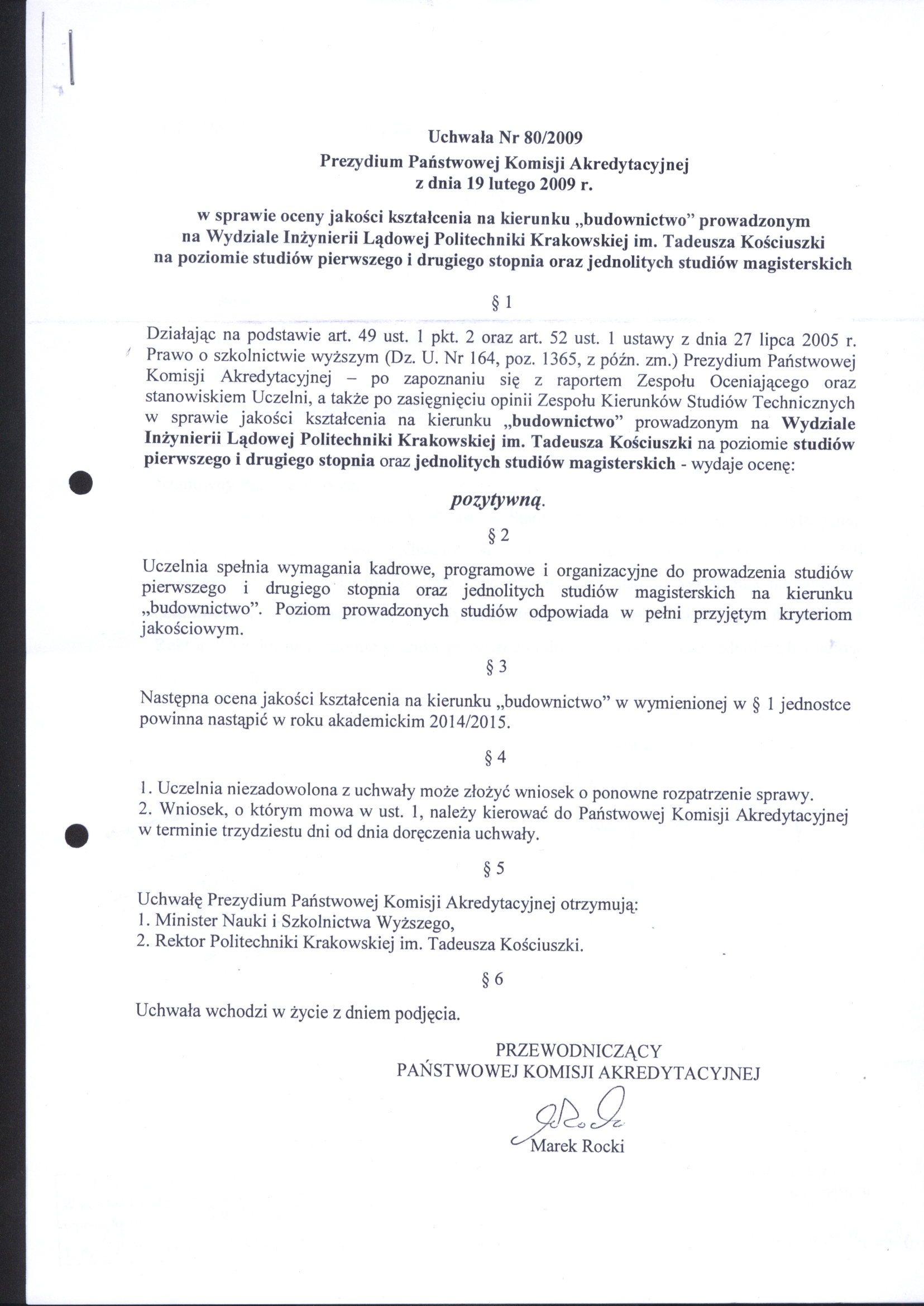 - Akredytacja programowa Polskiej Komisji Akredytacyjnej (PKA) – budownictwo