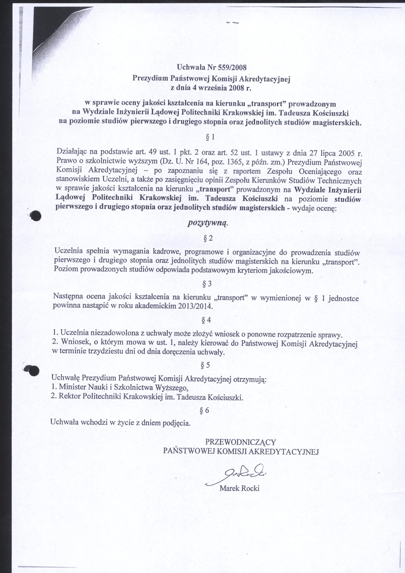 - Akredytacja programowa Polskiej Komisji Akredytacyjnej (PKA) – transport